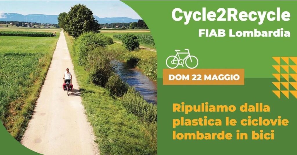 Fiab Lombardia organizza una giornata in bicicletta di raccolta dei rifiuti in plastica su ciclovie lungo i fiumi lombardi. Punti di partenza differenti a: Milano, Lodi, Romano di Lombardia, Cernusco sul Naviglio. Arrivo per tutti Cassano d’Adda.